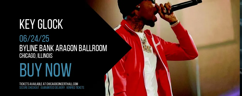 Do not miss Key Glock's electrifying show at Byline Bank Aragon Ballroom of Chicago, Illinois, on June 24, 2025. This is a part of his GLOCKAVELI Tour, a 20-city road trip that begins in Oklahoma City on May 21 and ends in Las Vegas on June 30. He's using these concerts to promote his latest album Glockaveli which will be released on May 2, 2025.